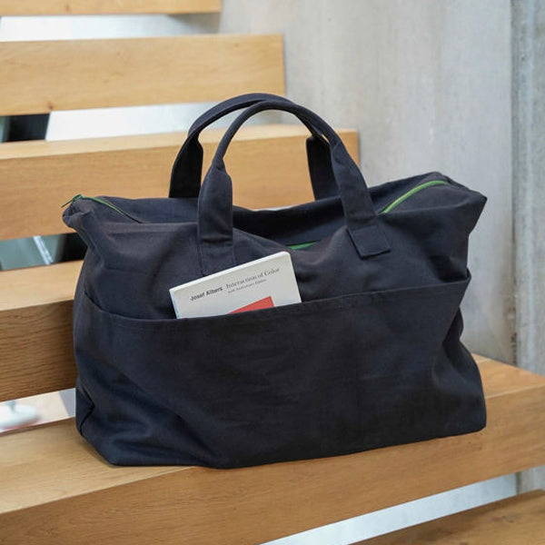 Head out of town with the Marlo Contrast Overnight Bag. The generously sized carryall bag makes a bold colour statement with its moody blue-back hue contrasting with a bright spirulina zip.