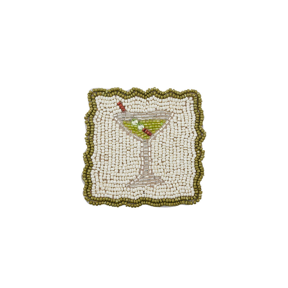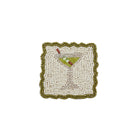 For the cocktail lovers, this chic, beaded coaster features a gentle wavy green edge, with martini glass design on a background of cream.