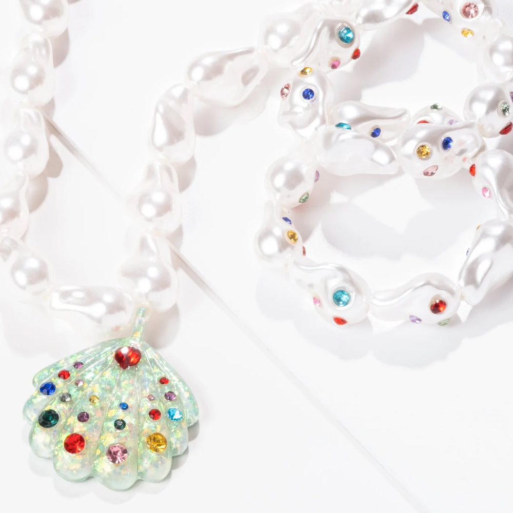 - Necklace features signature Super Smalls shell pendant with gem accents
