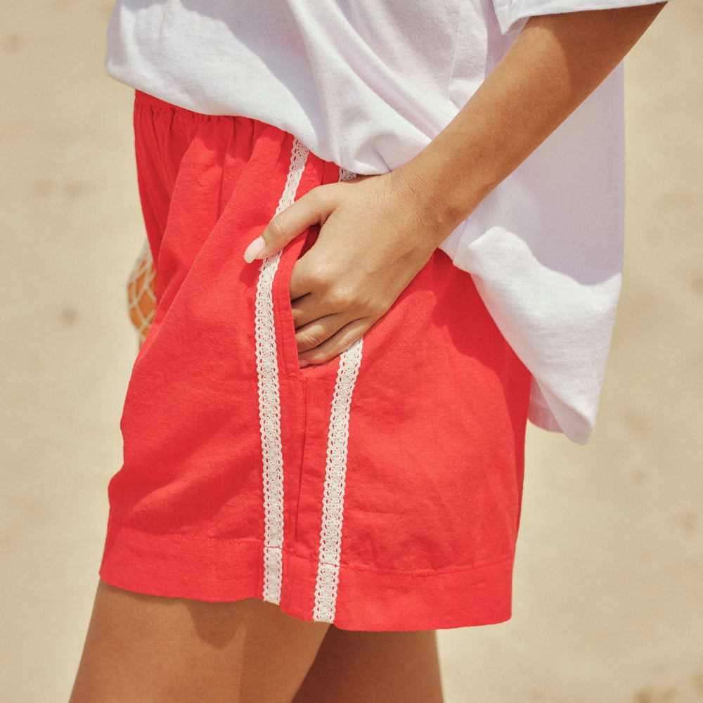 Meet the Mila Short (Ceres Life) crafted for laid-back days. Made from organic textured cotton , these shorts feature an elasticated waist for ultimate comfort. With pockets in the side seam, mid-thigh length and relaxed styling, you've got your go-to piece for effortless lounging in style.