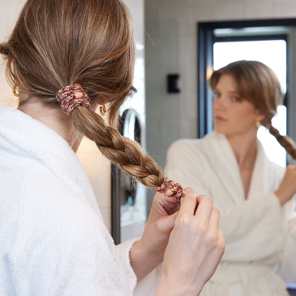 Known for its signature woven design, KKNEKKI Hair Ties offer a reliable, gentle grip that protects your hair from breakage, pulling, or tangling - perfect for daily wear. Designed to last, they are waterproof, colourfast, and built to handle everything from intense workouts to busy days.