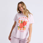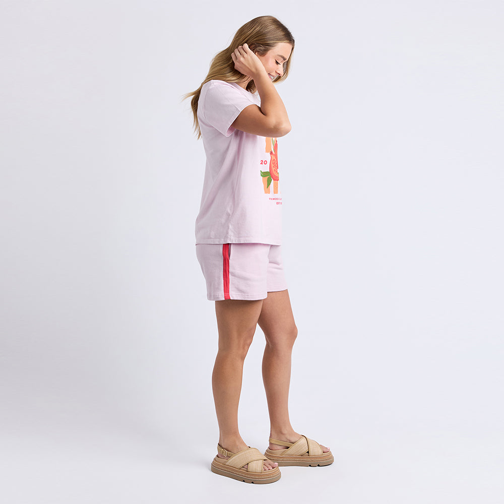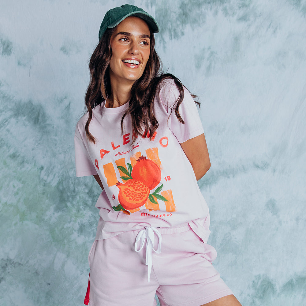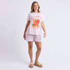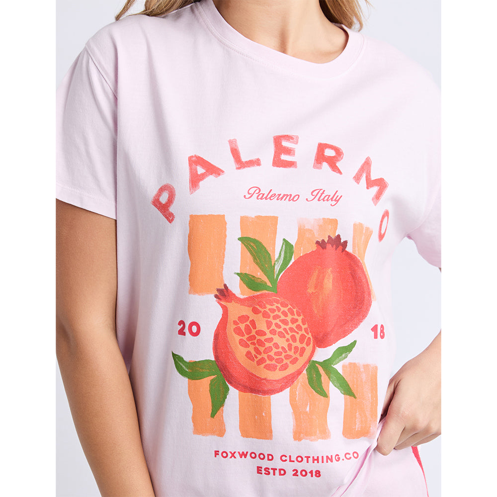 The Palermo Tee (Foxwood Clothing) in Lavender features a relaxed fit with a classic round neckline, short sleeves, and a bold front print. An easy, everyday piece that adds a soft pop of colour to any look.