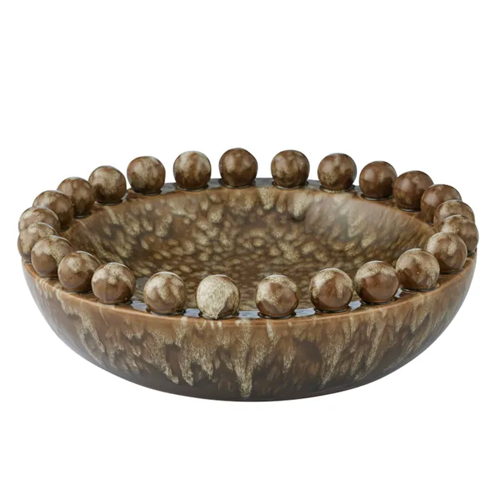 With a deep olive-brown, ombre glaze, and bobble effect along the rim, the Pip Ceramic Bowl playfully commands attention.