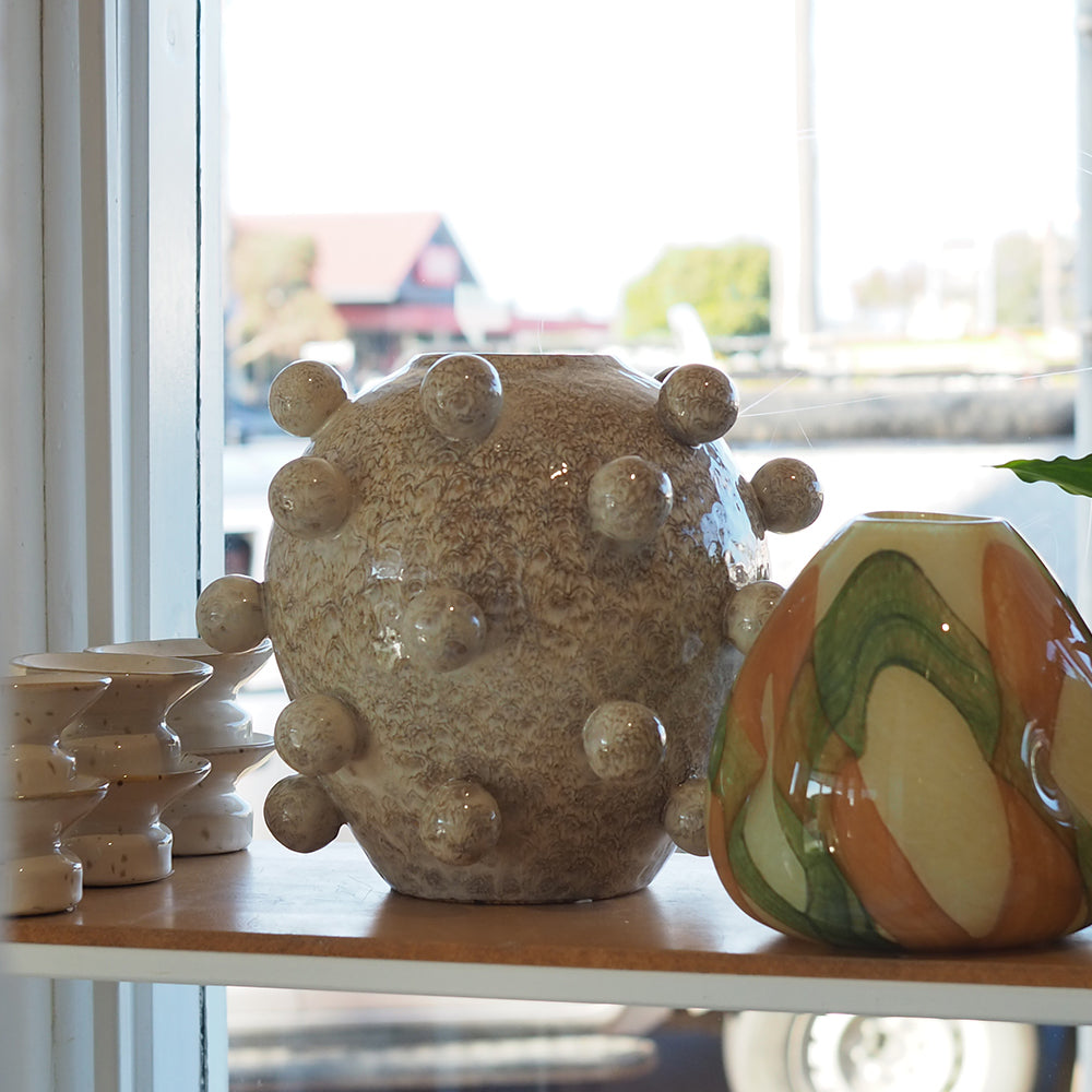 Pip is impressive. With an imperfect glaze of mottled ivory and browns, and exaggerated bobble effect, the oversized Pip Ceramic Vase is a playful, sculptural piece.