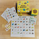 Poo Bingo comes complete with a fully illustrated board, chips, a small container to store them in, eight double-sided game cards and counters ready for players to mark up their cards and score those points!