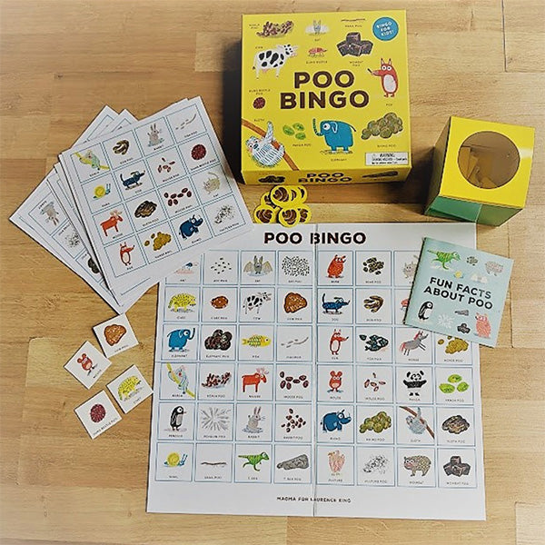 Discover all you ever wanted to know about poo – and more – with Poo Bingo! Featuring 24 animals and their uniquely shaped poos, this is the bingo game to end all bingo games. Kids will delight in discovering that wombats poo in cubes and that penguins poo in squirts that come in different colours depending on what they’ve eaten! Be the first to fill your game card with animals and poos to win BINGO!