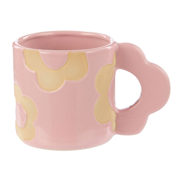 Made from stoneware with a fun pink glaze, the Posey Flower Mug adds a pop of personality to your daily brew! Featuring a flower-shaped handle and textured floral design, it's boxed and ready for gifting.