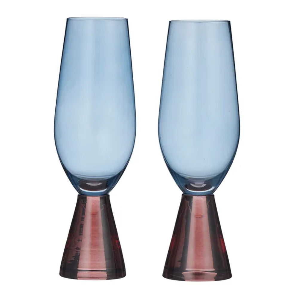 Featuring a sleek, elongated body in blue, on a conical russet stem, they'll be your new go-to glass for champagne and sparkling drinks.