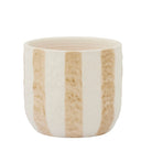 The statement Rayas Pot features bold striped detail in stylish Taupe, on a beautifully textured ceramic body. Perfect for smaller indoor plants.