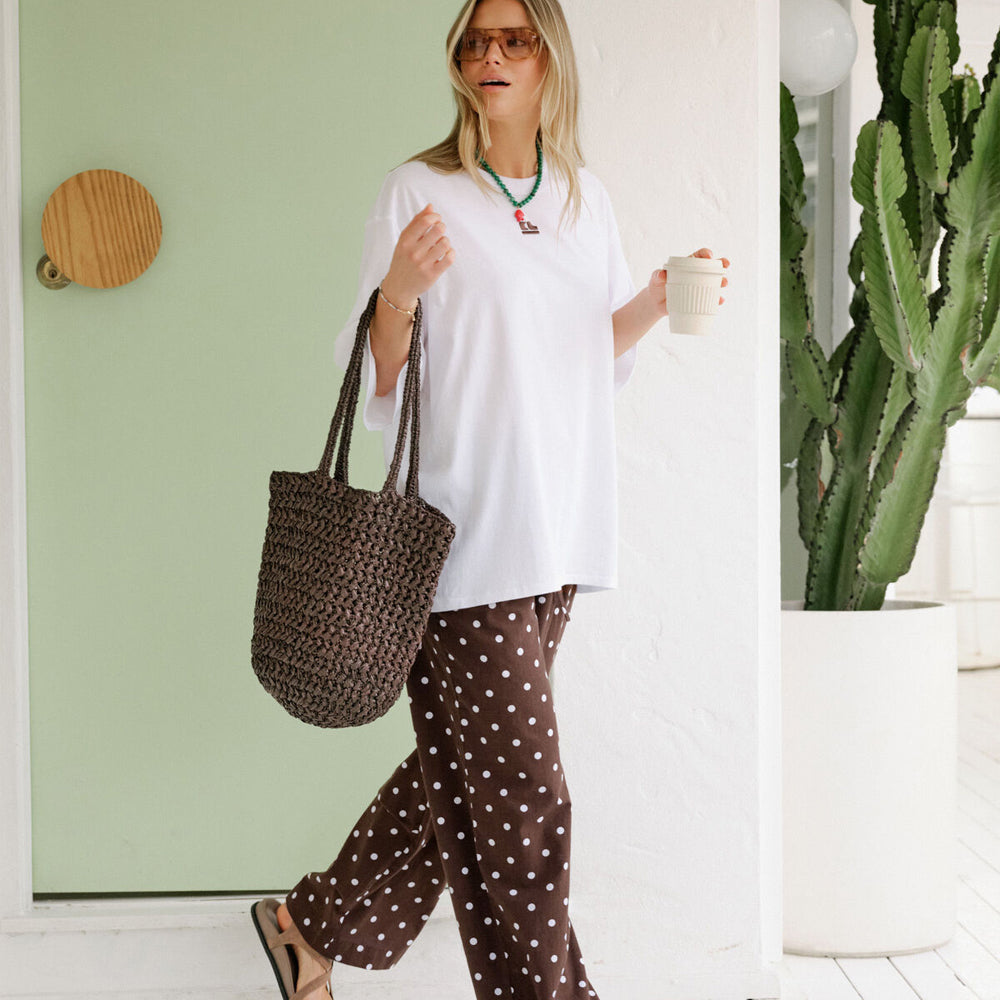 Meet the Resort Pant (Ceres Life)—your everyday staple made from soft, textured organic cotton. With an elasticated waistband with a waist tie, side pockets for everyday essentials, a flattering wide leg and relaxed styling, perfect for those easy going days when you want to look chic without sacrificing comfort.