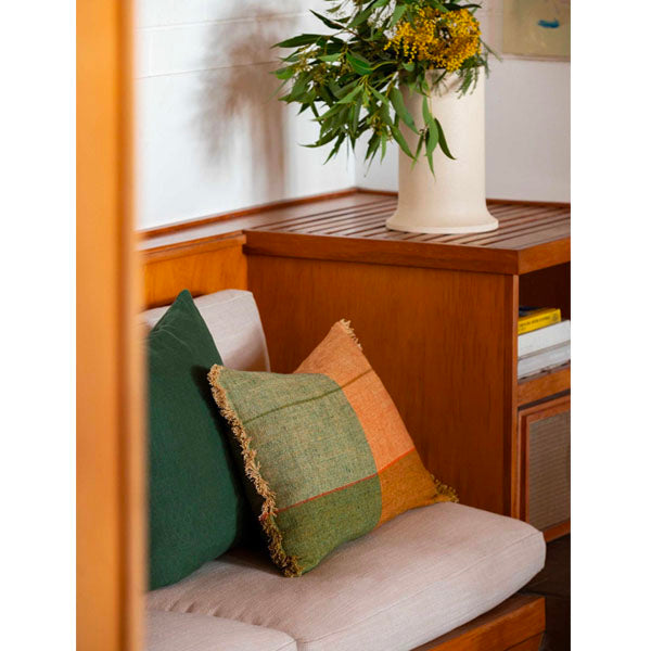 Add colour and texture to your home with our new Citta favourite - the Sol Cushion. Weaving techniques explore the interaction of playful colours, while the short edges of the cushion are finished with a fun fringe detail.