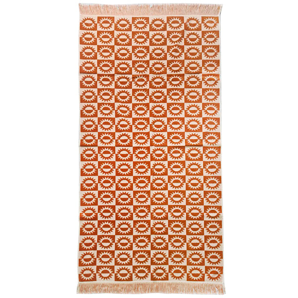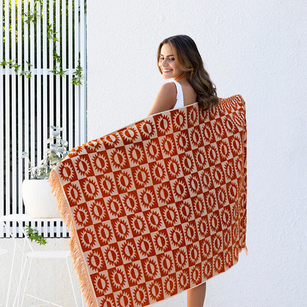 Hello sunshine! The Sola Beach Towel is the ideal accessory for the beach or pool this Summer. Featuring a fun sun pattern that is made using a high-low pile technique, as well as playful knotted tassels along both ends, it gives happy retro vibes. These towels are large in size, but lightweight, making them compact for travel and quick to dry.