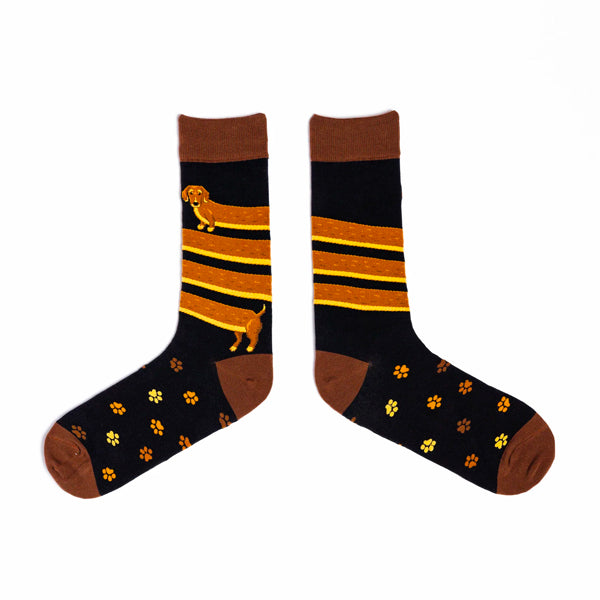 Round and round the sausage dog goes; down to my ankle but not to my toes!