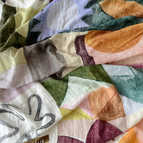 Thoughtfully designed for versatility, these wraps offer endless uses - from swaddling and nursing to lightweight blankets, pram covers, and bassinet sheets. For our wonderful parents, they become cozy throws, outdoor towels, a piece to be displayed as wall art and, our personal favourite, a summer sarong for warm sunny days.