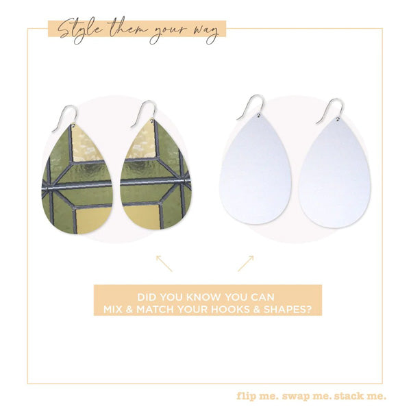 The earring you create your whole look around. You can't go wrong with our staple big tear drop earring and a design inspired by classic stained glass windows. It doesn't matter what you wear with these, they'll do all the talking.