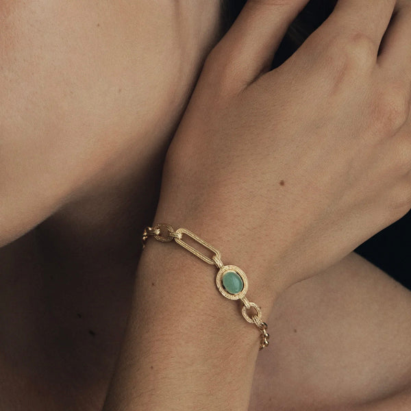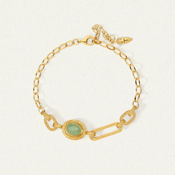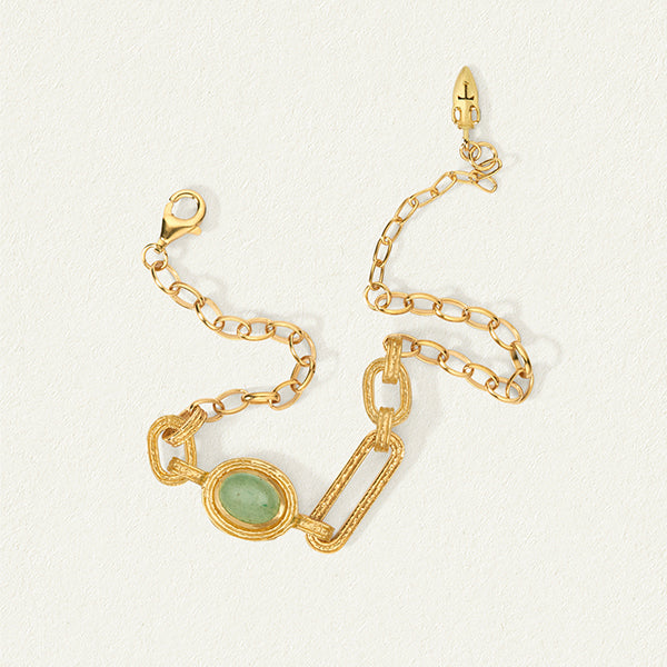 Crafted from 18k gold vermeil, the Talis Bracelet features a green aventurine cabochon, a stone linked to prosperity in multiple cultures through the ages.