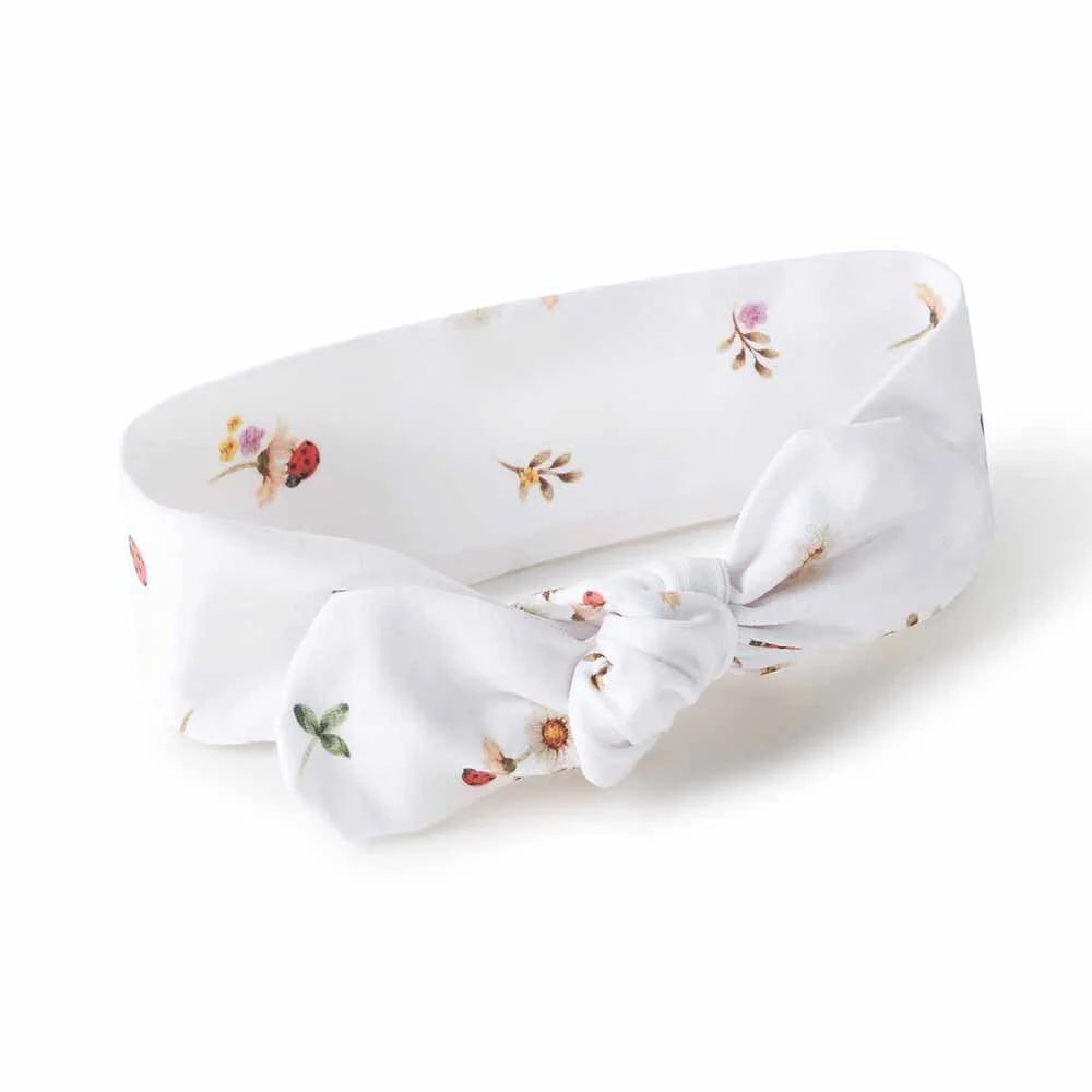 This super sweet, organic cotton Ladybug Topknot Headband makes a perfect gift for new bub, and pairs beautifully with the matching Muslin Wrap (sold separately).