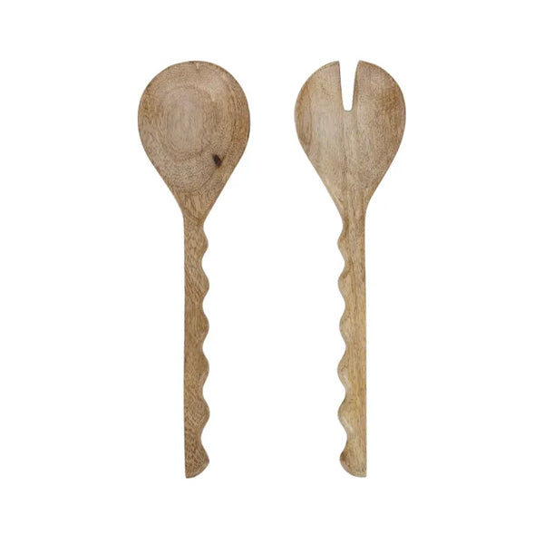 A fun twist on a simple serving item to add a little interest to your table setting. Made from mango wood, the Turin Wood Salad Servers feature a statement scalloped edge on one side of each of the tools. Pretty and practical.