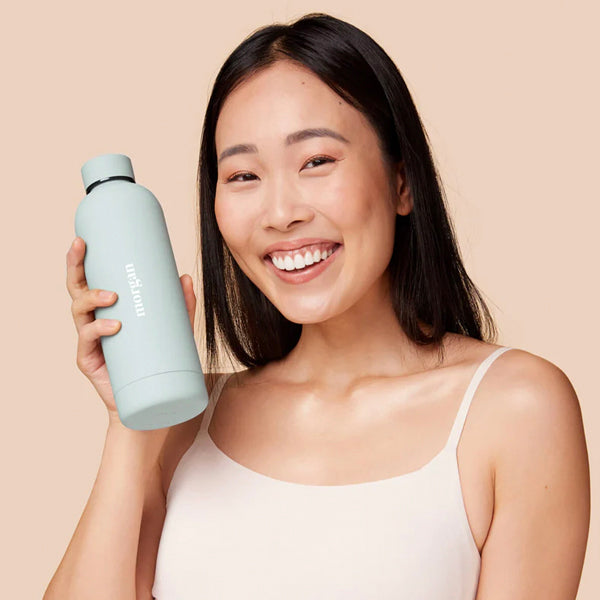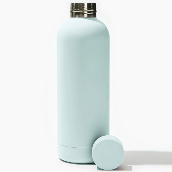 Featuring a luxe, Powder Blue satin finish and a sturdy, double-walled stainless steel design, this vacuum-insulated Water Bottle keeps liquids cold for 24 hours and hot for 12.