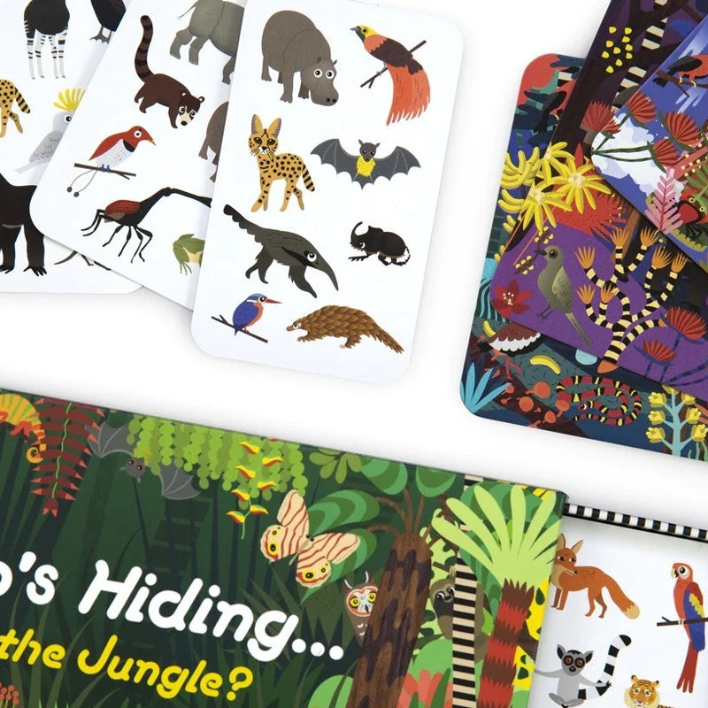 Pick a card, any card! With one landscape card and one animal card, there will only ever be one animal that features on both. From wild cats to camouflaged reptiles, can you be the first to find the concealed animal in amongst the jungle scenery? Featuring Caroline Selmes's delightful animal illustrations and jungle scenes.