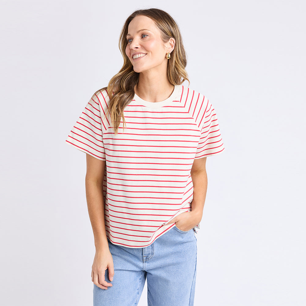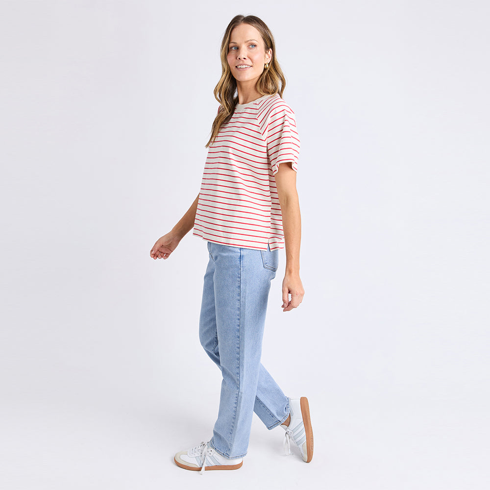 Windsor Stripe Tee - Vintage White + Red Stripe