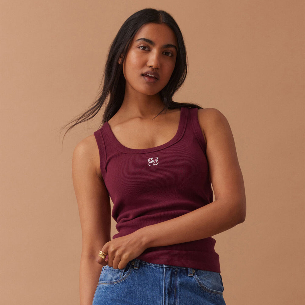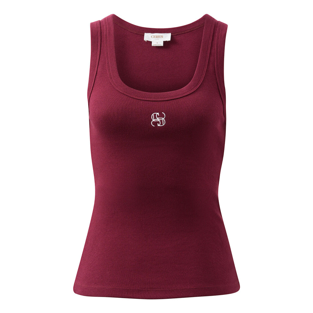 Zoe Contour Rib Scoop Tank - Pomegranate + Monogram Embroidery